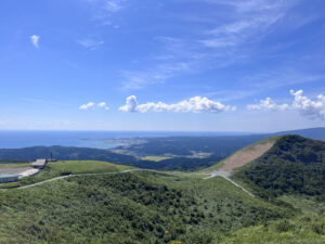 From the summit of Mount Kanpuzan, you can enjoy a breathtaking 360-degree panoramic view of the sea and mountains.